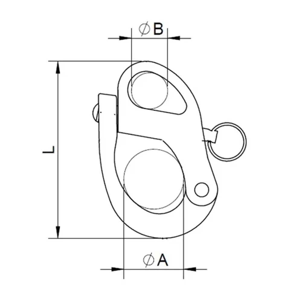 Dimensions and Specifications of 103mm Stainless Steel Fixed Snap Shackle – Ropes up to 14mm