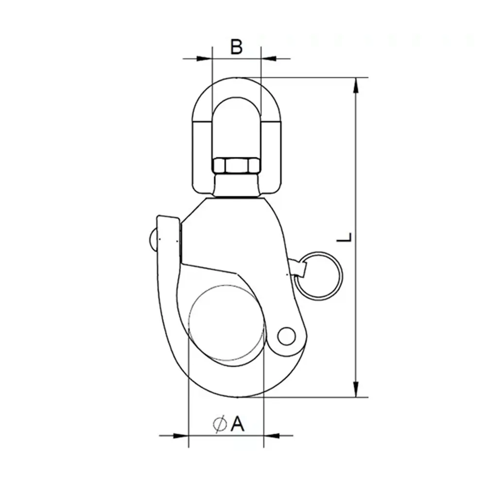 Dimensions and Specifications of 125mm Stainless Steel Swivel Snap Shackle – Ropes up to 16mm